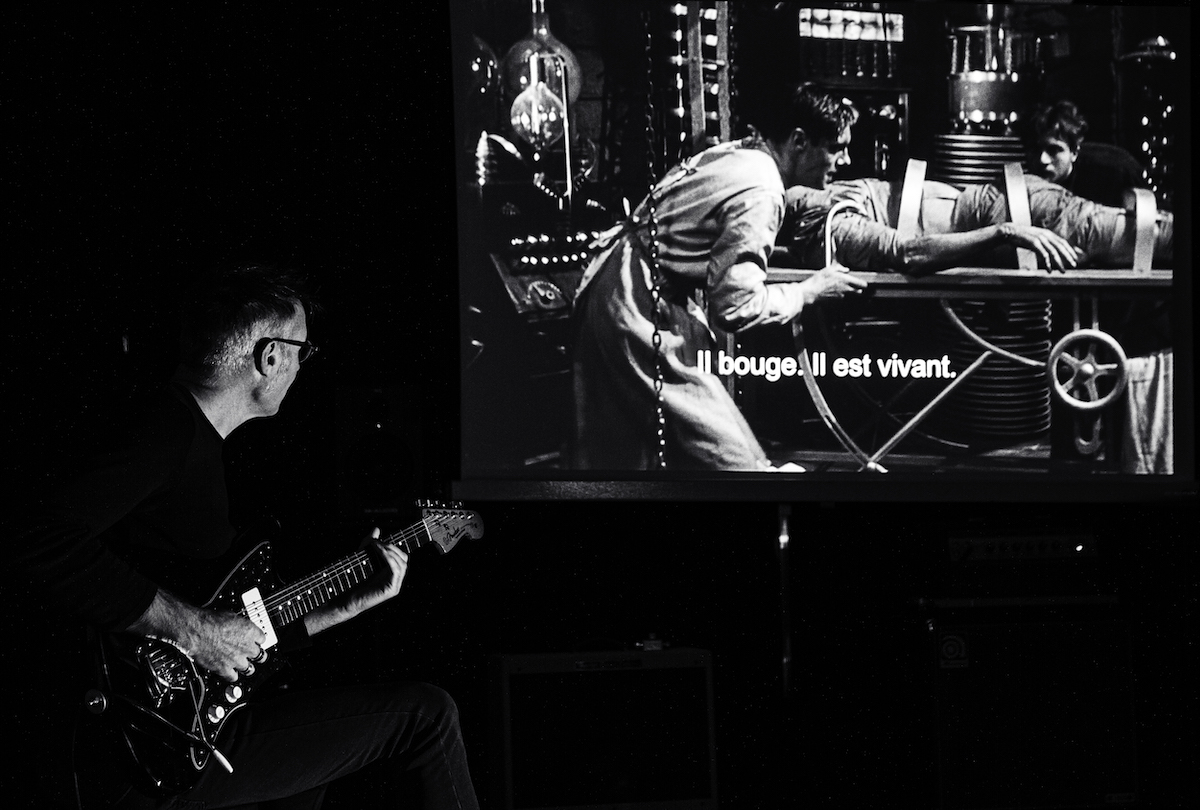 Seul en scène, guitare en main, utilisant pédales d’effets, boucles et programmations rythmiques, Dom Solo joue en direct ses compositions instrumentales originales. Se mettant au service des images du film, la musique en souligne et en accentue l’univers fantastique.